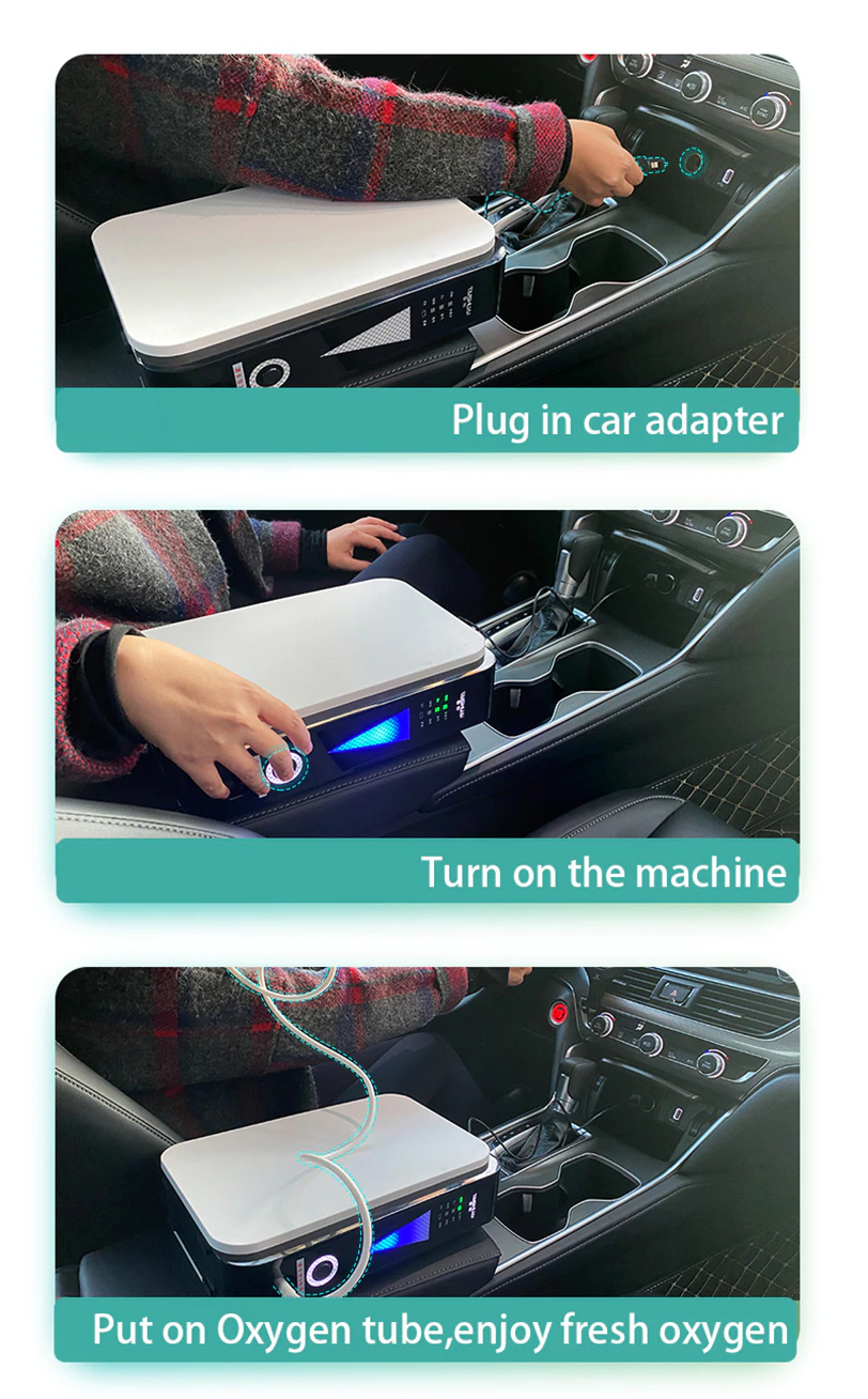 1. Small size, LightWeight, easy to carry.Net: 1.88kg 2.1L flow 3. Atomization function 4.Negative ion function, enjoy the air of nature. 5.Imported molecular sieve, long life. 6.Precision compressor, low noise. 7. One-button control, easy to operate. 8. 5 filtration systems to ensure oxygen purity. 9,Household X Car Use. 10,Automatic power off protection. 40mins. 11,The elderly: Improving brain functioning as they develop dementia and other conditions. White-collar women: Skin care, Skin nutrition and elasticity maintenance, Reduction of sub-health status. Pregnant women: Helpful to fetus development. Businessman: Relaxing physical and mental tension, Improving physical ability, Reducing sub-health status and improving work efficiency. Students: Improving remembrance and reducing mental fatigue.